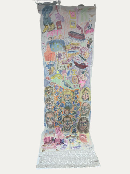 This collection features three pieces of cloth painted using gouache and fabric paint, inspired by Triptychs and religious iconography see throughout my time in Italy. The first reflect on my time as a baby, the second on my childhood, and the third on my time studying abroad.